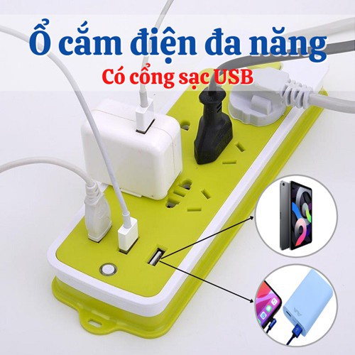 ✔️Thiết bị được gọi là ổ cắm đa năng thông minh bởi ngoài ra còn được tích hợp 3 khe cắm USB, có thể sạc cho tất cả các thiết bị di động sử dụng cổng usb như IPhone, Ipad, các dòng điện thoại Samsung, Sony, LG