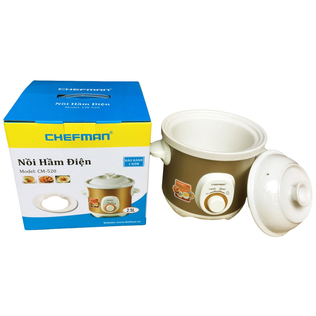 Giới thiệu (Chính hãng-Lỗi 1 đổi 1) Nồi nấu cháo Chefman 2.5 lít CM-520 - Nồi hầm xương, Nồi kho cá, Nồi nấu chè - Bảo hành 1 năm