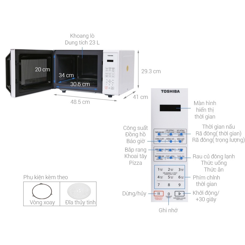 Thiết Bị Điện Gia Dụng > Đồ gia dụng nhà bếp > Lò vi sóng || [Chính Hãng - Made in ThaiLand] Lò vi sóng cao cấp 23 lít Toshiba ER-SS23(W1)VN, lỗi 1 đổi 1, bảo hành 12 thángCòn hàng
