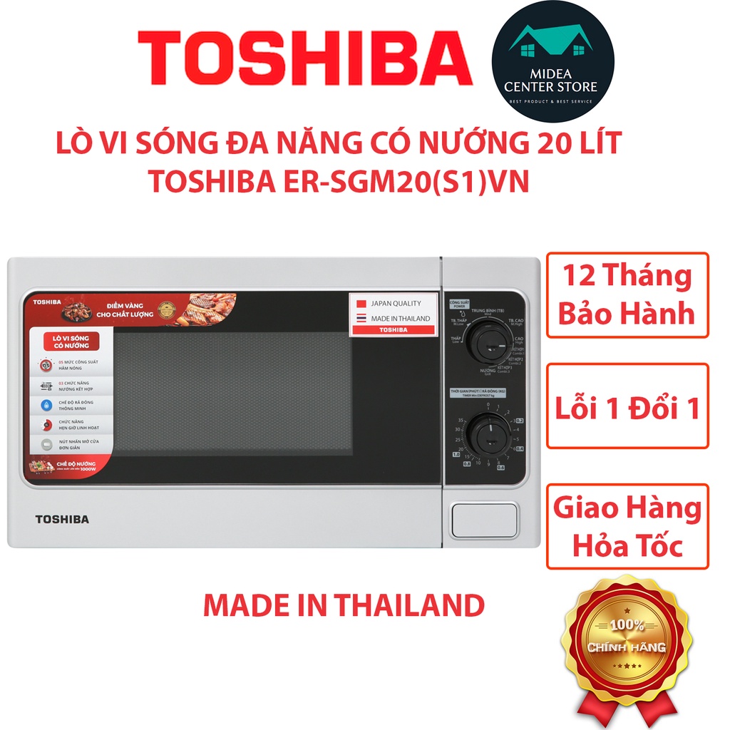 Thiết Bị Điện Gia Dụng > Đồ gia dụng nhà bếp > Lò vi sóng || [Chính Hãng - Made in ThaiLand] Lò vi sóng cao cấp 20 lít Toshiba ER-SGM20(S1)VN, lỗi 1 đổi 1, bảo hành 12 thángCòn hàng