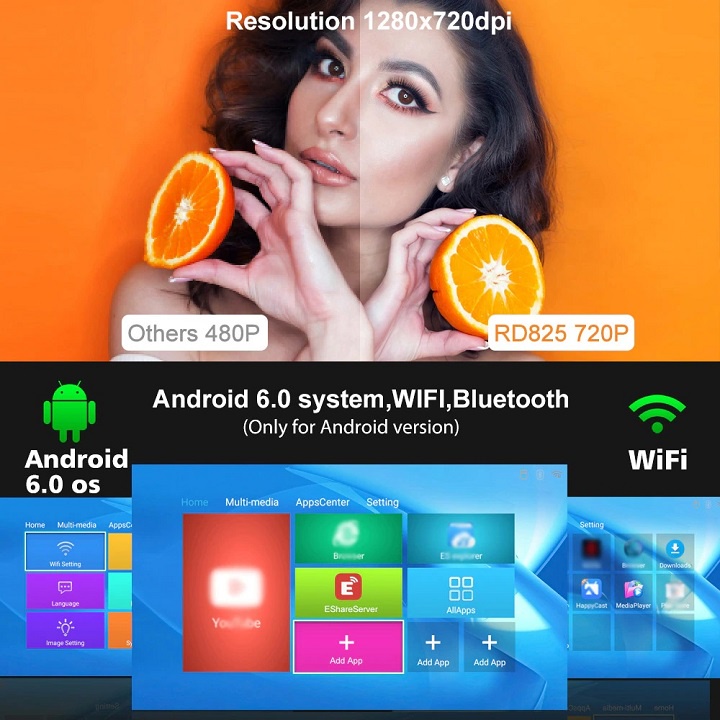 Giới thiệu [ Chính hãng ] Máy Chiếu Rigal RD825 Android 1080P Hỗ Trợ Tiếng Việt Tặng kèm HDMI không dây Chromecast Ultra 4K