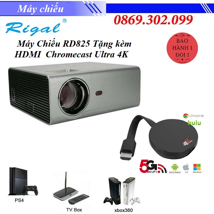 [ Chính hãng ] Máy Chiếu Rigal RD825 Android 1080P Hỗ Trợ Tiếng Việt Tặng kèm HDMI không dây Chromecast Ultra 4K