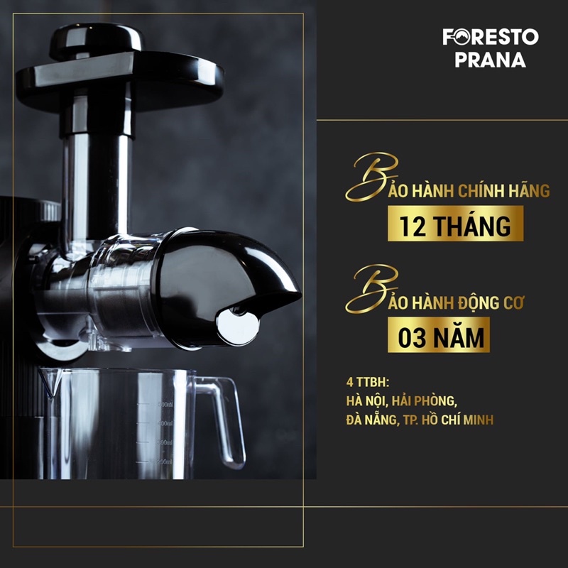 [Chính Hãng] Máy Ép Chậm Foresto Prana - BH 36 Tháng, Chuyên Ép Rau, Củ, Quả Không Lo Nóng Máy - Kẹt Máy