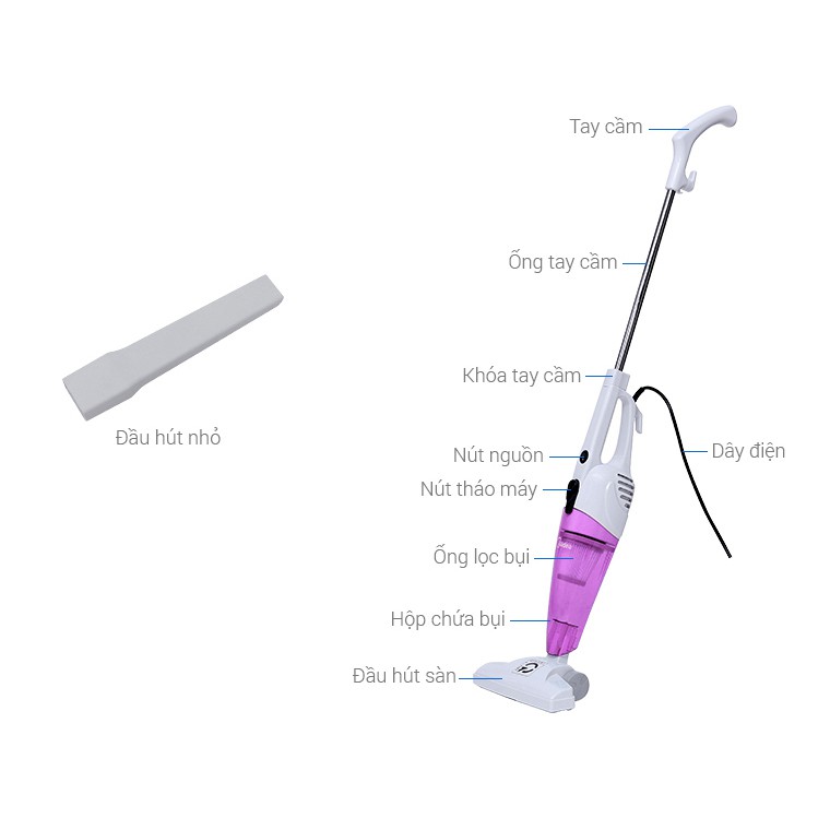2 đầu hút: đầu hút sàn và đầu hút khe tiện cho việc vệ sinh.