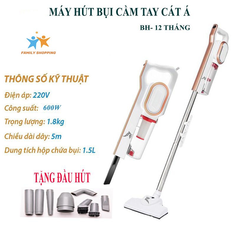 [Chính Hãng] Máy hút bụi gia đình cầm tay 2 trong 1 công suất 600W bộ lọc HEPA Tặng kèm 9 đầu Hút✅ ✅ Máy hút bụi gia đình Cầm Tay 2 trong 1 CÁT Á có công suất hút bụi mạnh mẽ, đi kèm với nhiều đầu hút để bạn lựa chọn phù hợp với bề mặt làm sạch. Máy hút bụi CÁT Á là một chuyên gia hút các loại bụi khô trên mọi bề mặt như: bề mặt gỗ, bề mặt vải, ghế sofa, ghế ô tô, mọi ngóc ngánh trong nhà.......