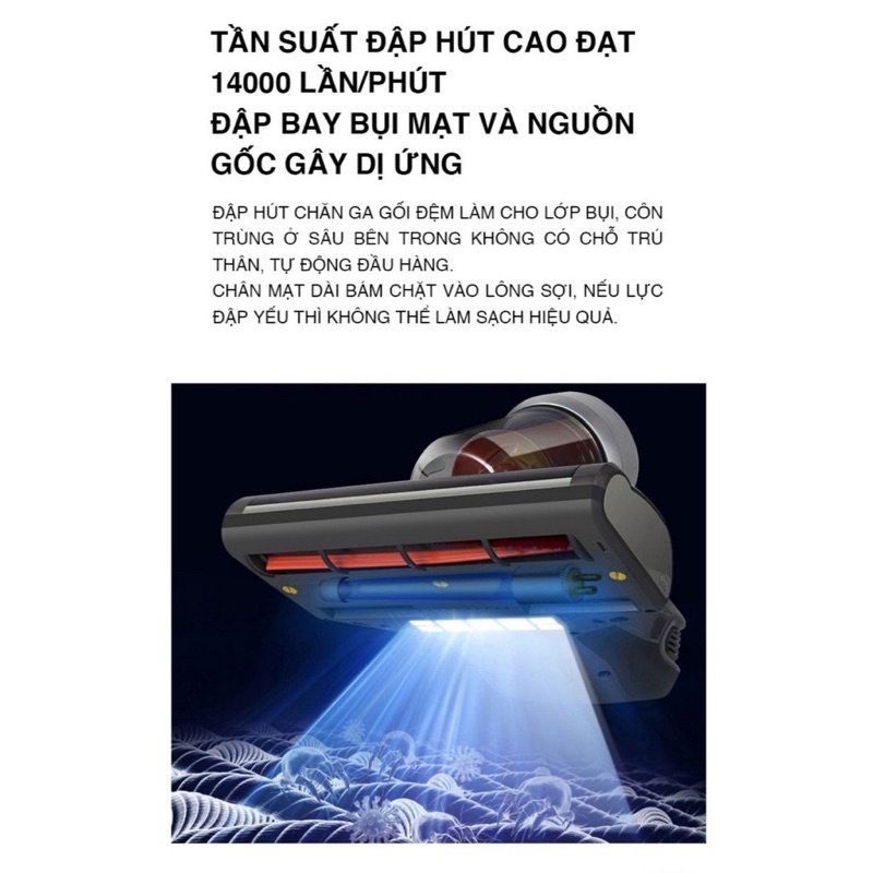Máy sở hữu bàn chải đa năng xoáy có đường kính dài 35mm kết hợp cùng công nghệ đập hút lốc xoáy 3600 giúp chăn màn của bạn luôn sạch sẽ.
