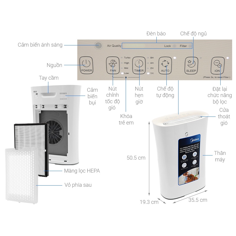 Tên sản phẩm: Máy Lọc Không Khí Midea Cho Diện Tích Phòng 20m2 - 28m2Thương hiệu: MIDEA