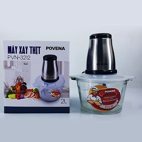 Thiết Bị Điện Gia Dụng > Đồ gia dụng nhà bếp > Máy chế biến thực phẩm & Xay thịt || [Chính hãng] Máy xay thịt 300W Povena PVN-3212 với cối thủy tinh 2L và lưỡi dao 2 tầng xay nhuyễn thịt cá nhanhCòn hàng