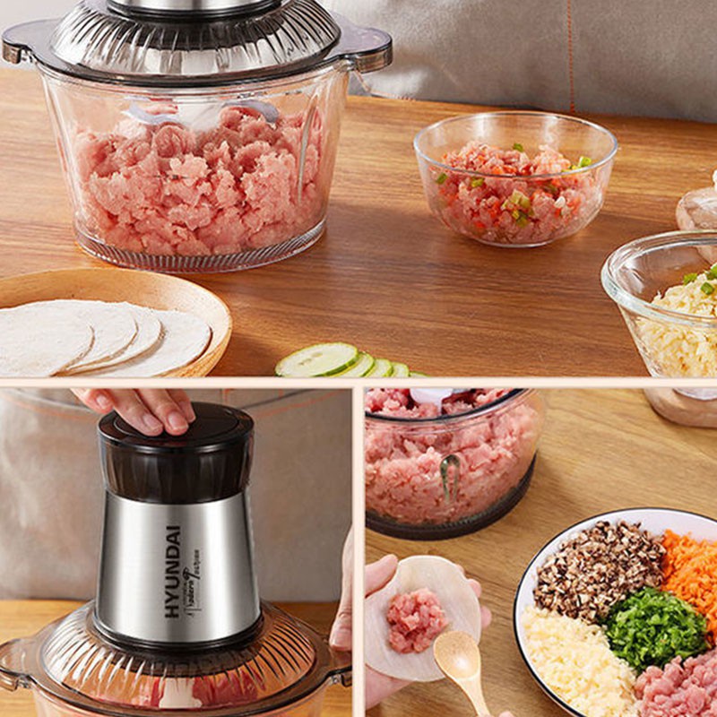 Nhà cửa & Đời sống > Dụng cụ nhà bếp > Bàn nạo, dụng cụ bào, cắt || [Chính hãng] Máy Xay Thịt đa năng cối bằng thủy tinh công suất lớn 2 Lưỡi Dao Kép 2L HuyndaiCòn hàng