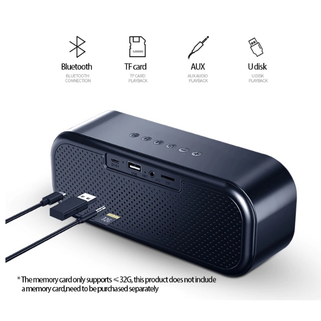 Hỗ trợ Thẻ TF hoặc Thẻ SD misro lên đến 32G, hỗ trợ AUX, hỗ trợ USB 2.0.