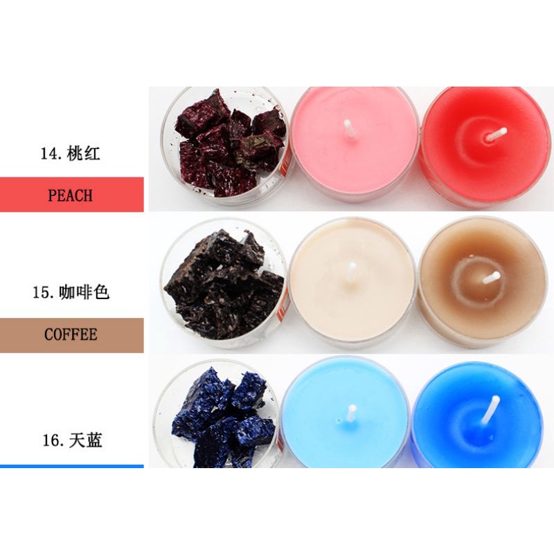 Nhà cửa & Đời sống > Trang trí nhà cửa > Nến & đồ đựng nến || [Hàng mới] 10g Màu làm nến/ màu sáp nến tự nhiên tan tốt lên màu đẹpCòn hàng