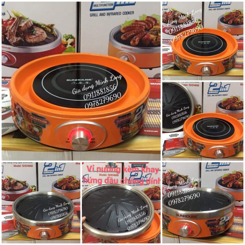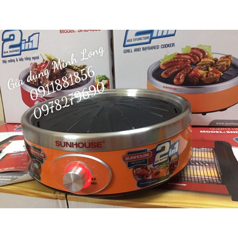 [Mã ELHADEV giảm 4% đơn 300K] [Hàng Mới chính hãng giá tốt]BẾP NƯỚNG HỒNG NGOẠI SUNHOUSE 2 TRONG 1 SHD4668