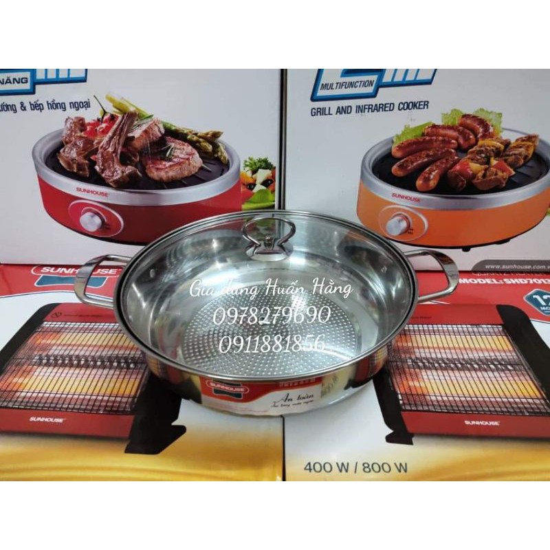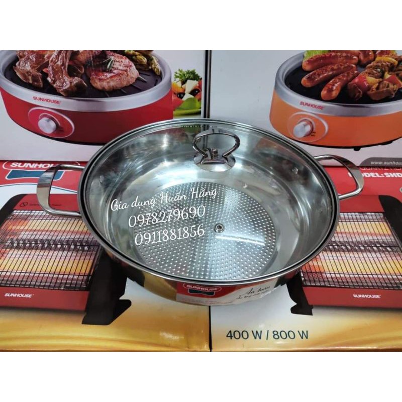 [HÀNG MỚI CHÍNH HÃNG] NỒI LẨU INOX VUNG KÍNH SUNHOUSE SHGP30G (ĐẾ SẦN SIZE 30CM)