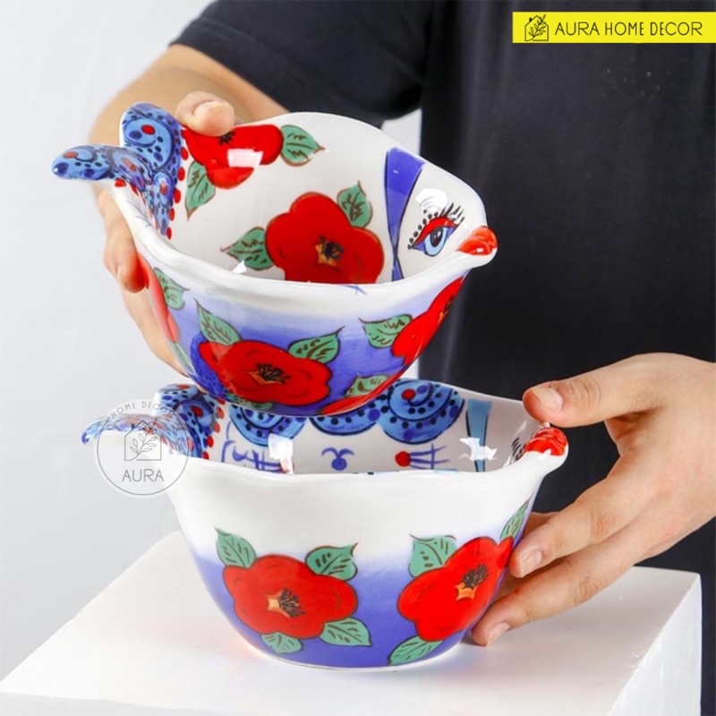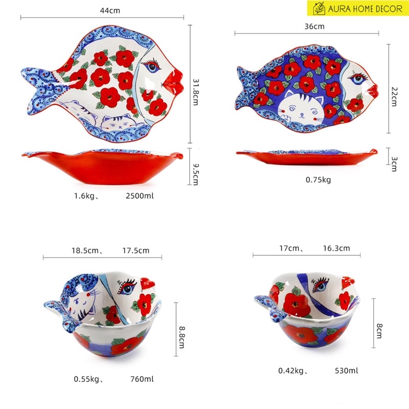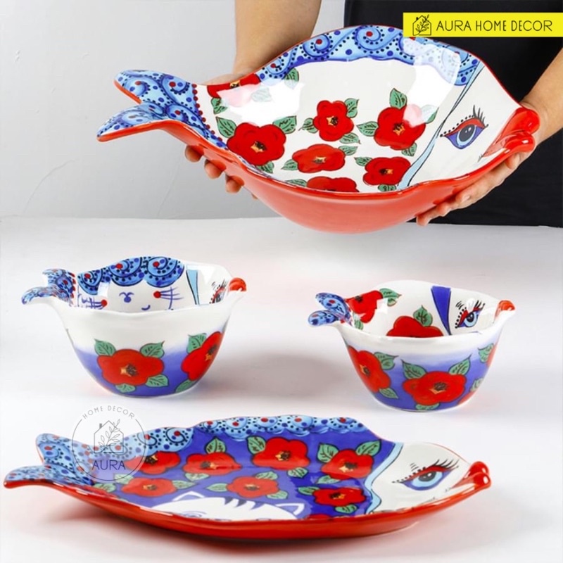 Giới thiệu [HÀNG MỚI - CÓ SẴN] Bát, tô, đĩa gốm sứ mỹ nghệ Âu Mỹ OMK hình cá sặc sỡ - Hoạ tiết hoa đỏ xanh, sống động tươi sáng