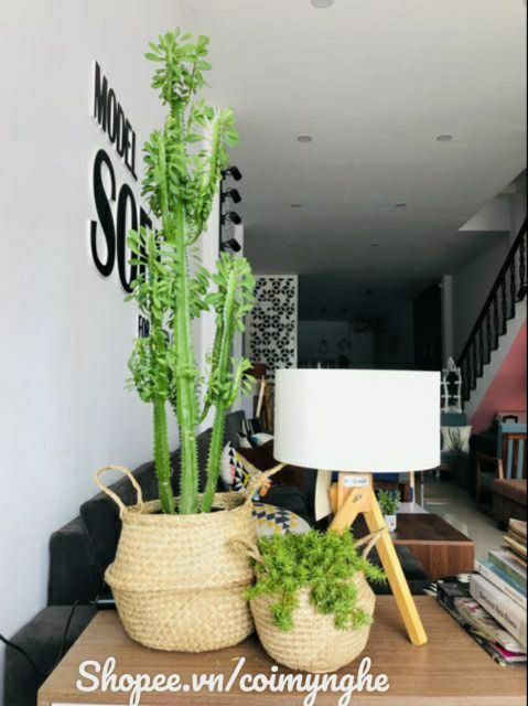 Giỏ cói trồng cây vingtage Dùng đựng cây trang trí shop, trang trí homestay, quán cofee,...hoặc dùng đựng đồ cá nhân. Giỏ có thể gấp gọn cực tiện lợi, thích hợp mọi góc trong nhà.Có nhiều kích thước cho khách lựa chọn.