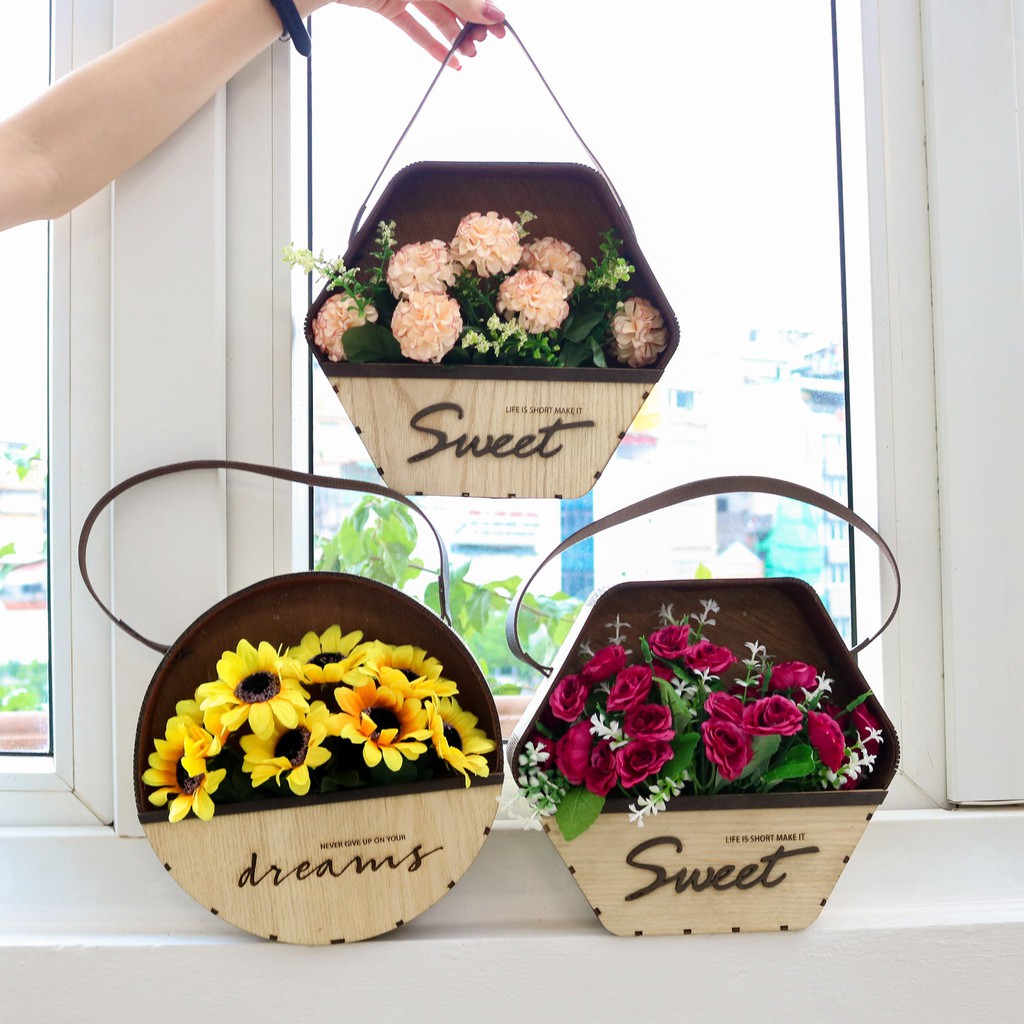 Nhà cửa & Đời sống > Trang trí nhà cửa > Bình trang trí || ( HÀNG MỚI ) Giỏ hoa decor treo tường, để bàn trí cắm sẵn - Giỏ hoa treo tường , trang trí phòng ngủCòn hàng