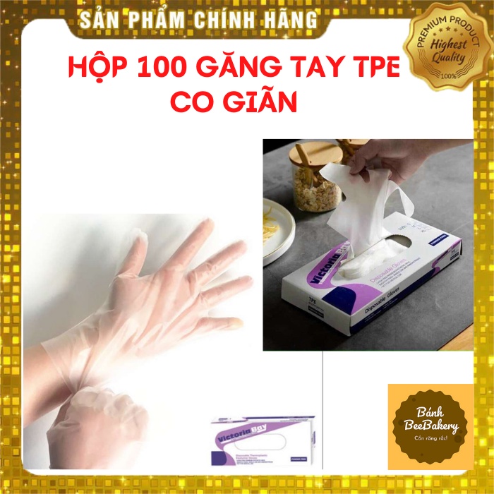 [Hàng mới] Hộp 100 găng tay Victoria Bay TPE, Bao tay cao su rửa bát làm bếp vệ sinh siêu dai không mùi không bột