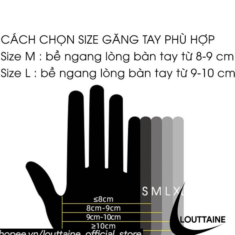 - Size: size S ( lòng bàn tay nhỏ hơn 8 cm), M (lòng bàn tay từ 8-9cm) , L ( lòng bàn tay từ 9-10cm),