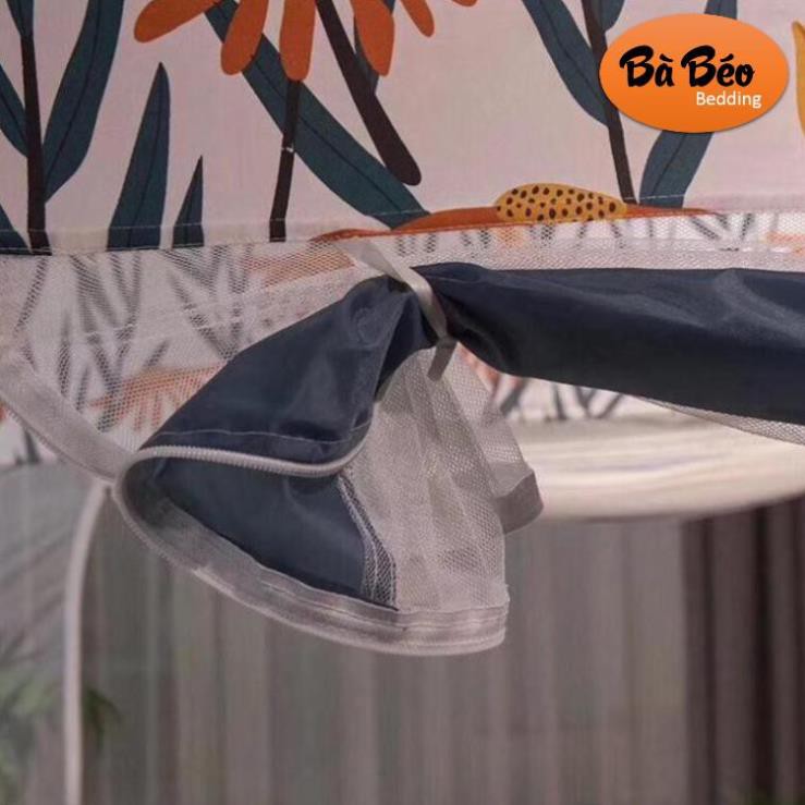 + Đáy màn được may cẩn thận, chần kỹ, sắc cạnh. Kết hợp với 4 góc chun cài vào nệm và khung thép vững chắc, giúp bảo vệ em bé không bị lăn khỏi giường giúp mẹ yên tâm để bé nằm ngủ một mình.