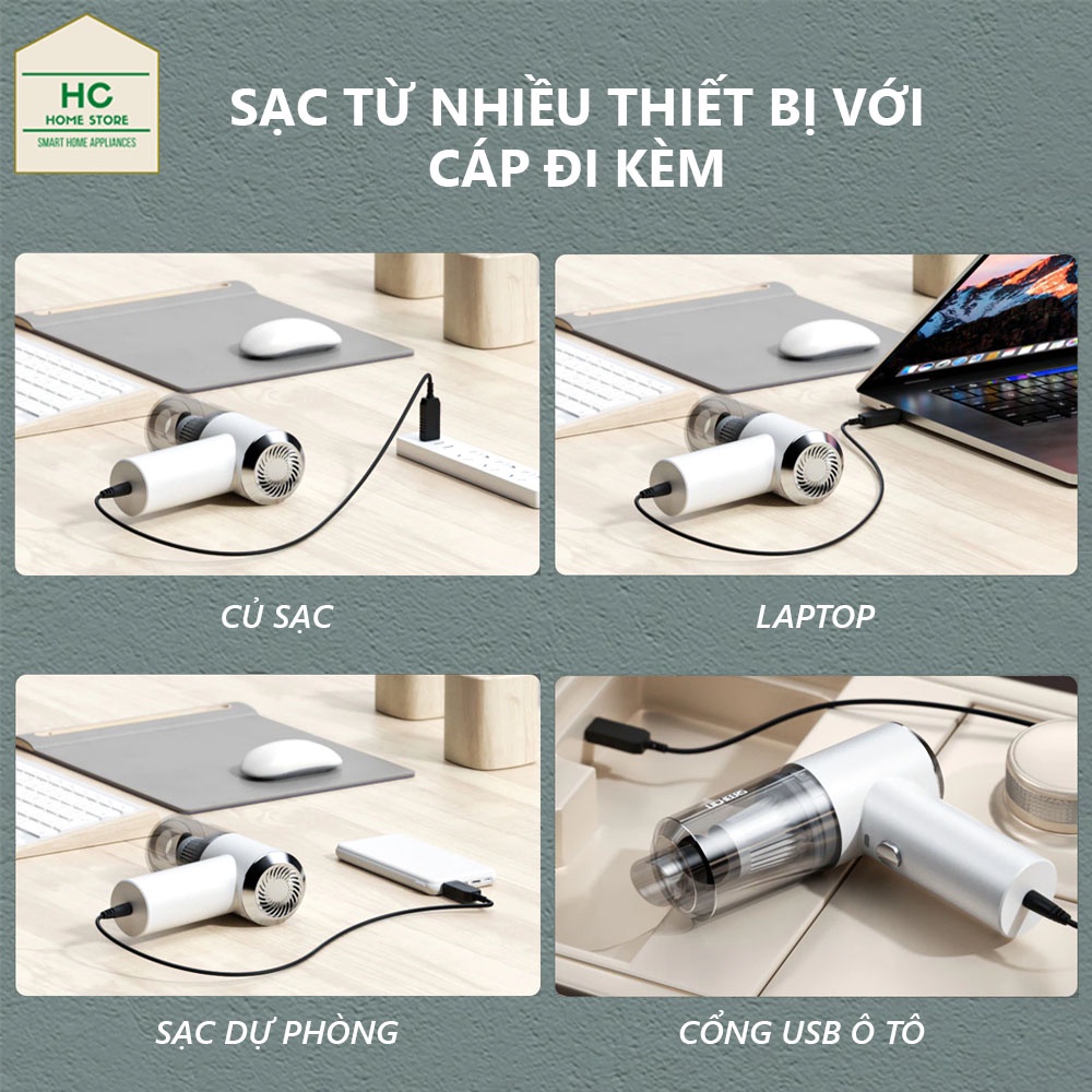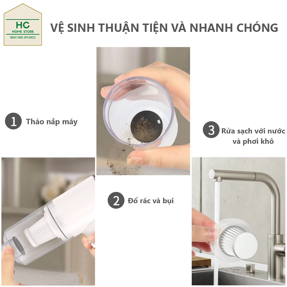 HC Home Store xin giới thiệu sản phẩm máy hút bụi mini cầm tay không dây sử dụng pin sạc rời dung lượng cao. Với nguyên tắc 3 không: