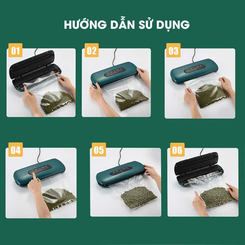 Máy có 2 chức năng: chức năng hàn miệng túi, và chức năng hút chân không.