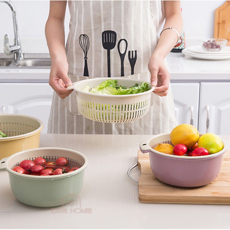 (Hàng mới) Rổ rửa đựng hoa quả rau củ 2 ngăn tiện lợi- BEEHOME- Gia dụng tiện ích
