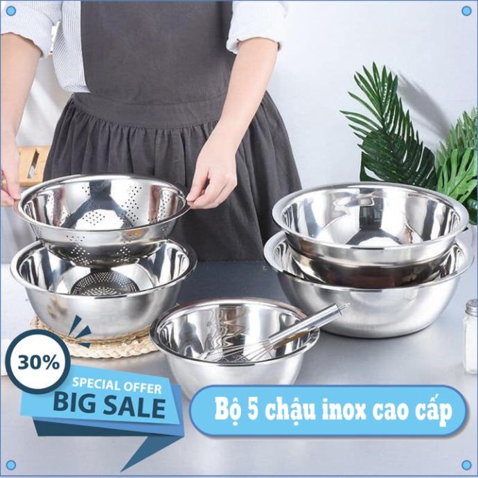 [HÀNG MỚI VỀ] Bộ 5 chậu inox cao cấp các cỡ từ to đến nhỏ xuất Nhật
