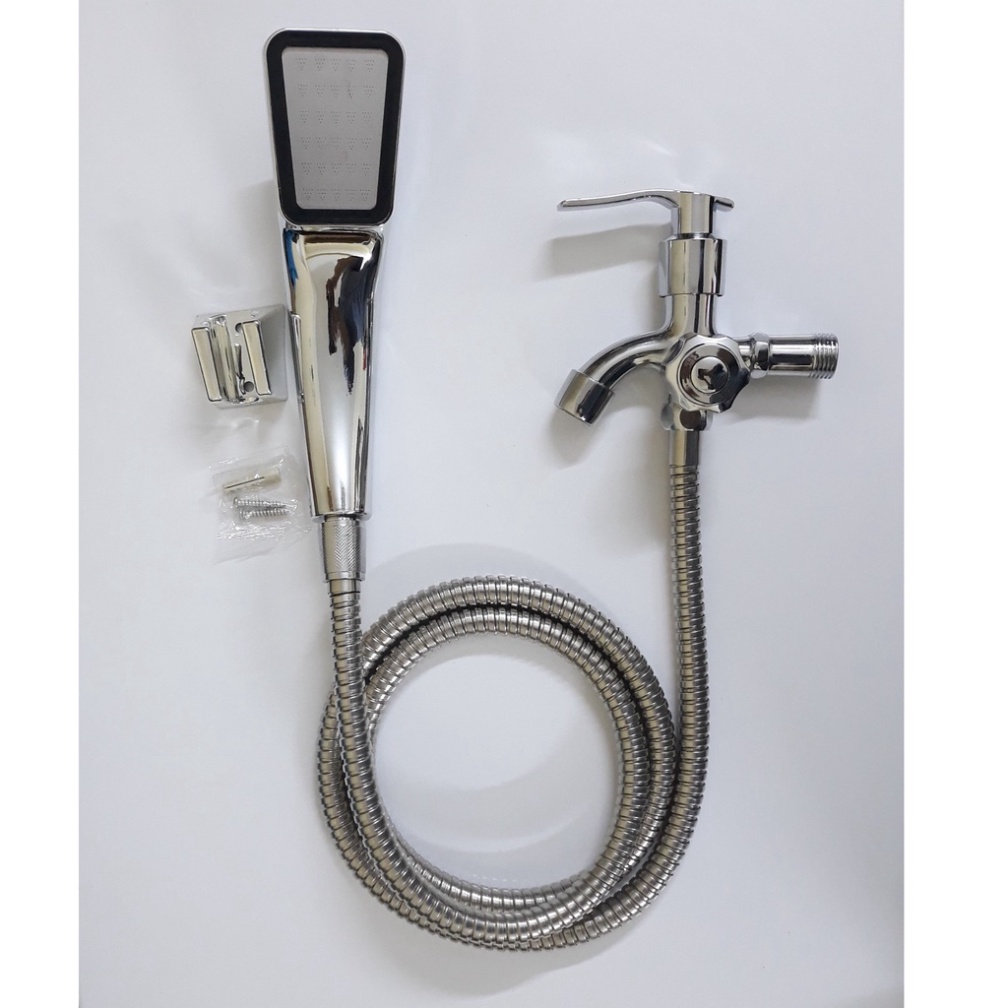 Nhà cửa & Đời sống > Đồ dùng phòng tắm > Vòi sen & vòi xịt vệ sinh || [ Hàng Mới Về ] Bộ củ sen 1 đường nước lạnh kèm tay sen tăng áp vuông nhựa ABS mạ Crom mặt inox chống rỉ sét thế hệ mớiCòn hàng