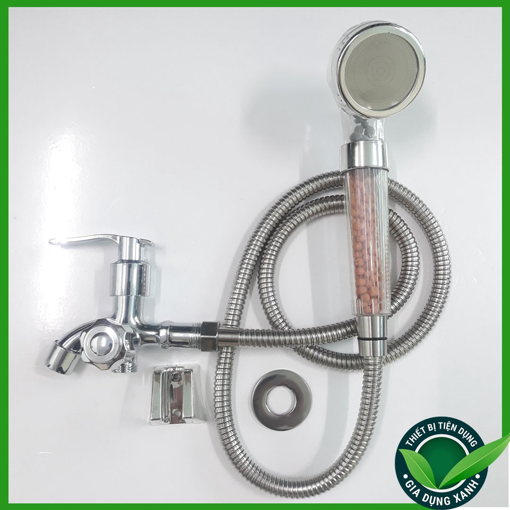 - Vòi sen gồm 3 tầng lọc: bóng lon âm, đá khoáng Maifan, hạt Zeolite loại bỏ các tạp chất trong nước