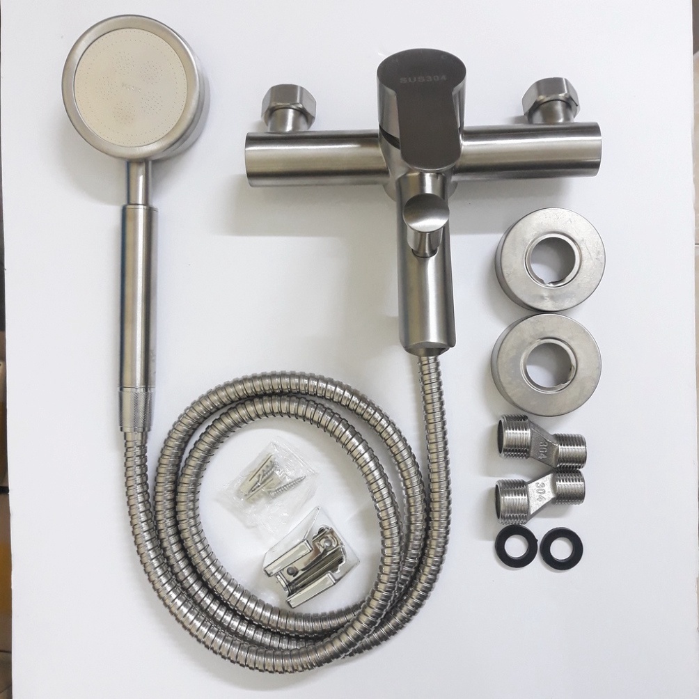 Nhà cửa & Đời sống > Đồ dùng phòng tắm > Vòi sen & vòi xịt vệ sinh || [ Hàng Mới Về ] Bộ đầy đủ củ sen nóng lạnh inox và tay sen tăng áp tối đa tới 400% inox SUS 304 cao cấp không gỉ sétCòn hàng