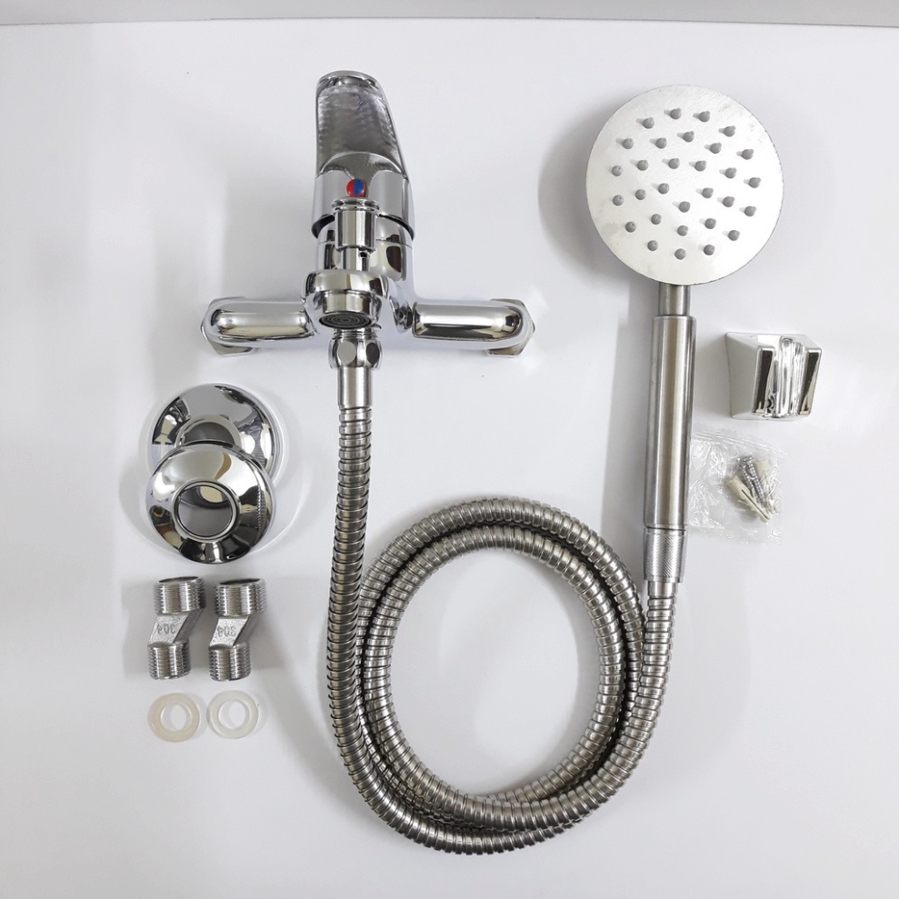 Nhà cửa & Đời sống > Đồ dùng phòng tắm > Vòi sen & vòi xịt vệ sinh || [ Hàng Mới Về ] Bộ đầy đủ Củ sen nóng lạnh bằng đồng thau và Tay sen tắm tăng áp chất liệu inox 304 tròn dẹt sáng bóngCòn hàng