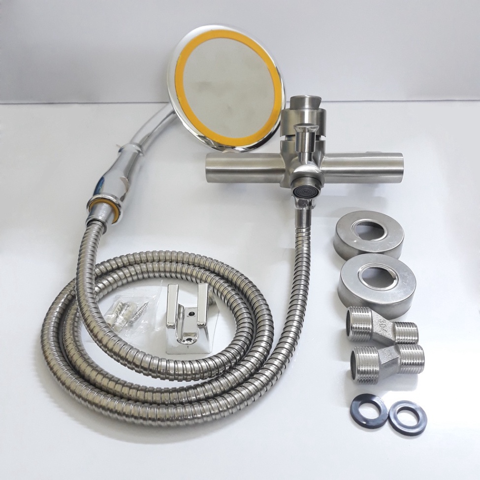 Nhà cửa & Đời sống > Đồ dùng phòng tắm > Vòi sen & vòi xịt vệ sinh || [ Hàng Mới Về ] Bộ đầy đủ Củ sen nóng lạnh inox và Tay sen tăng áp loại to mặt 15cm tay cong chỉnh góc mặt sen linh hoạtCòn hàng