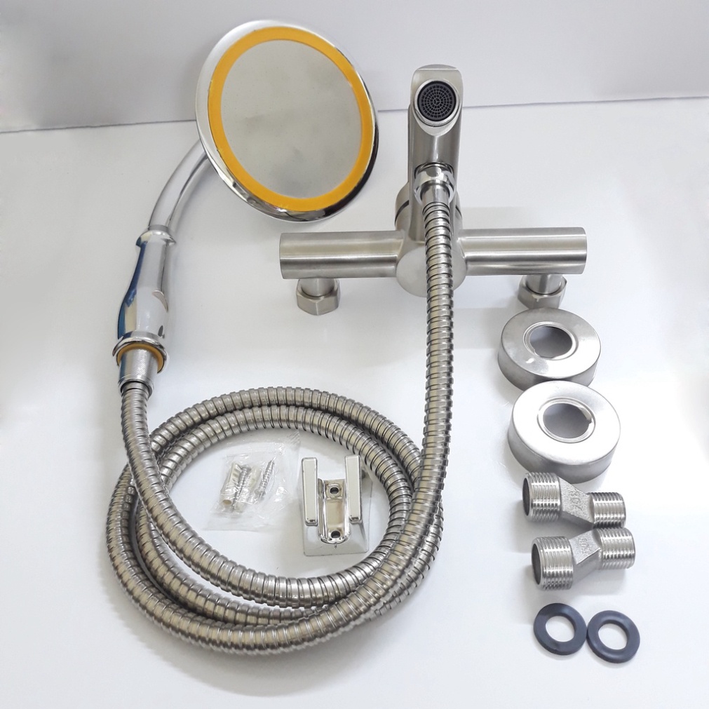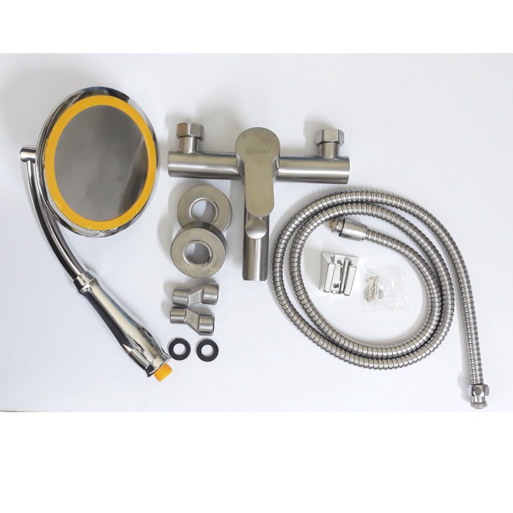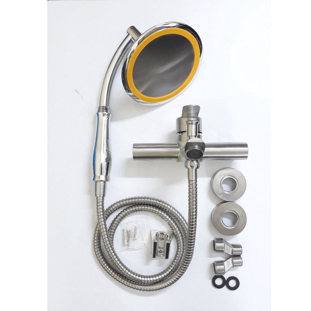 Nhà cửa & Đời sống > Đồ dùng phòng tắm > Vòi sen & vòi xịt vệ sinh || [ Hàng Mới Về ] Bộ đầy đủ Củ sen nóng lạnh inox và Tay sen tăng áp loại to mặt 15cm tay cong chỉnh góc mặt sen linh hoạtCòn hàng