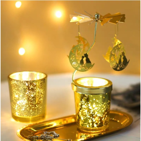 - Với khung cảnh lãng mạn cùng những tia sáng phản chiếu xung quanh, cốc nến xoay giúp người xem vô cùng thích thú. Biến không gian đơn điệu trở nên đặc sắc hơn với những vòng quay chong chóng.