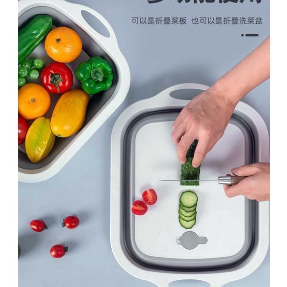 - giảm bớt các dụng cụ nhà bếp cồng kềnh vì chậu có thể gấp gọn treo lên và còn thành chiếc thớt cho bạn giảm bớt 1 thứ đồ