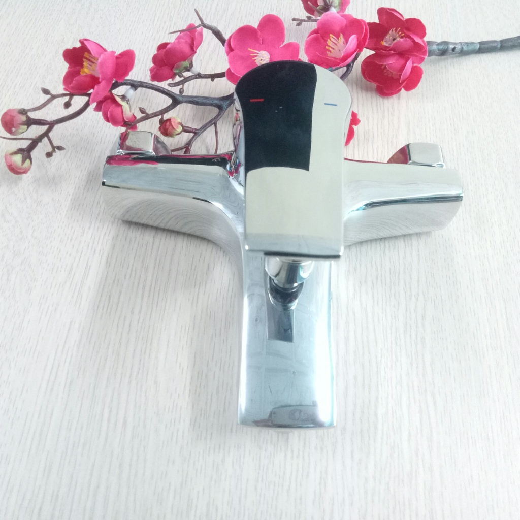 (Hàng mới về) Củ Sen Nóng Lạnh Đồng Thau Mạ Niken và Crom Sáng Bóng Tay Cần Gạt Vuông Cứng Cáp Sang Trọng - QM.CS04