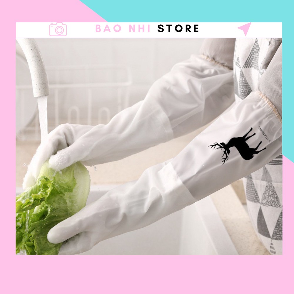 ⚡HÀNG MỚI VỀ⚡ Găng tay cao su con hươu lót nỉ siêu dai, găng tay cao su rửa bát dài có dây thun chống tuột 88237