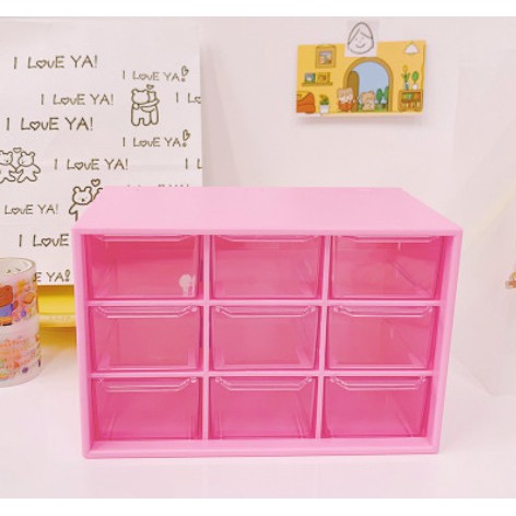Hộp nhựa gồm 9 ngăn kéo nhỏ dùng đựng trang sức/ cột tóc/ kẹp tóc/ son/ v..v.. cực xinh xắn và tiện lợi đây ạ