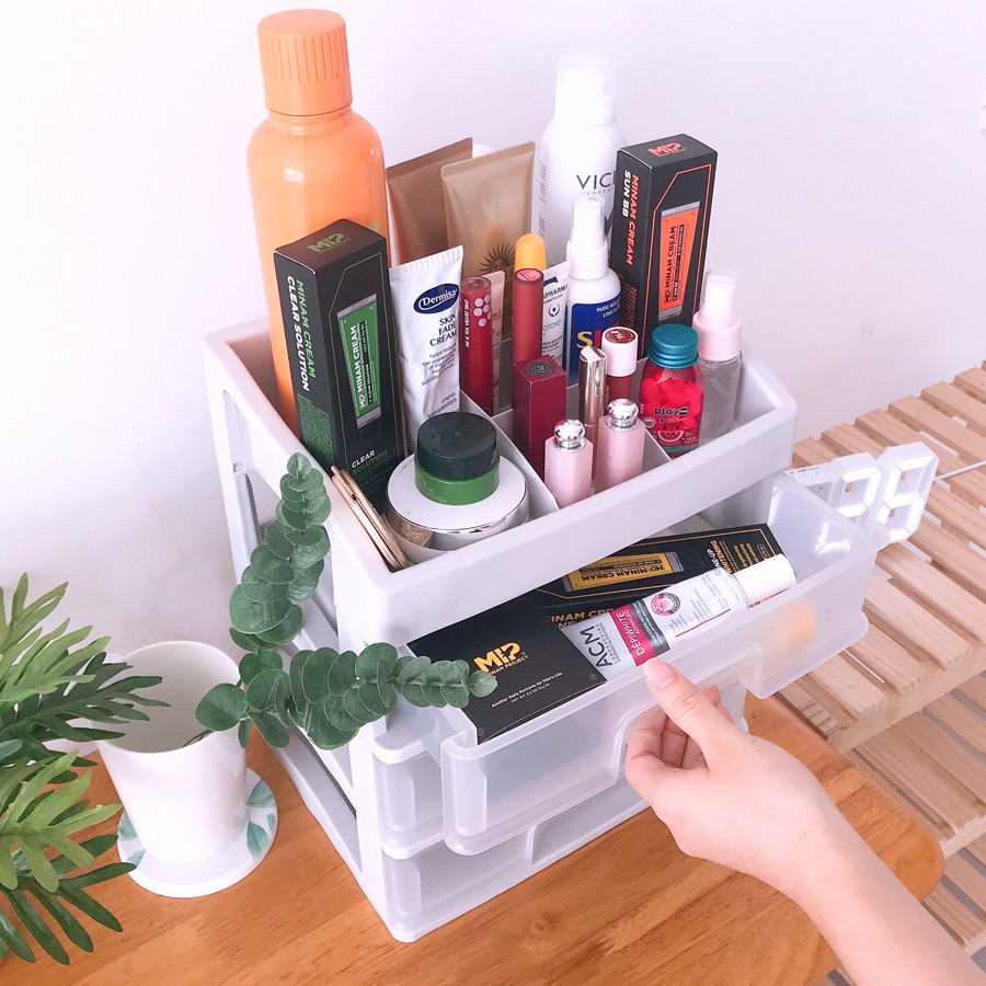 - Kệ đựng mỹ phẩm 2 tầng, hộp đựng đồ trang điểm, makeup bằng nhựa cao cấp, tiện sử dụng có Thiết kế nhỏ gọn tiện lợi.