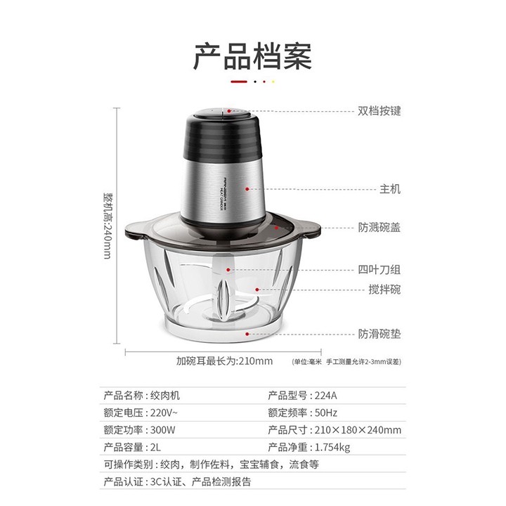 Máy Xay Thịt Cối Thủy Tinh RANBEM 300W 4 LƯỠI SIÊU BỀN- Với công nghệ chế tạo Thuỵ Điển, Ranbem 224A - Máy xay thịt nhanh chóng và an toàn, vệ sinh thuận tiện.