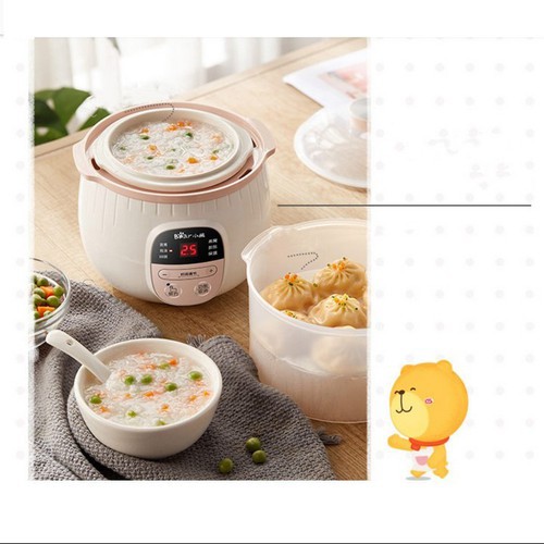 (HÀNG MỚI VỀ) Nồi nấu cháo chậm, cách thủy và ninh hầm ăn dặm cho bé Bear kèm lồng hấp