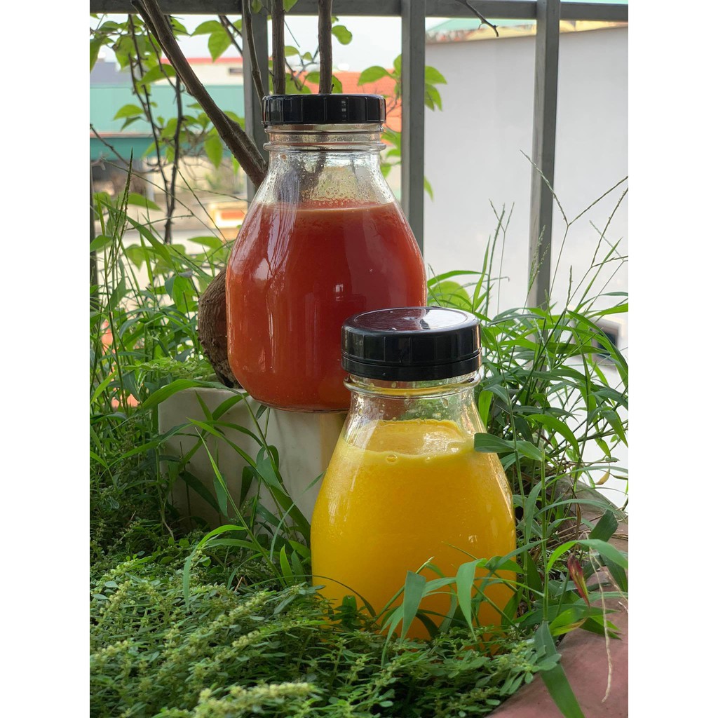 Giới thiệu Hàng Mới Về Siêu Đeẹp | Chai Thuỷ Tinh Vuông Lùn Miệng Rộng Nắp Nhựa 300ml 500ml | Đựng sữa chua , nước ép , trà lên men