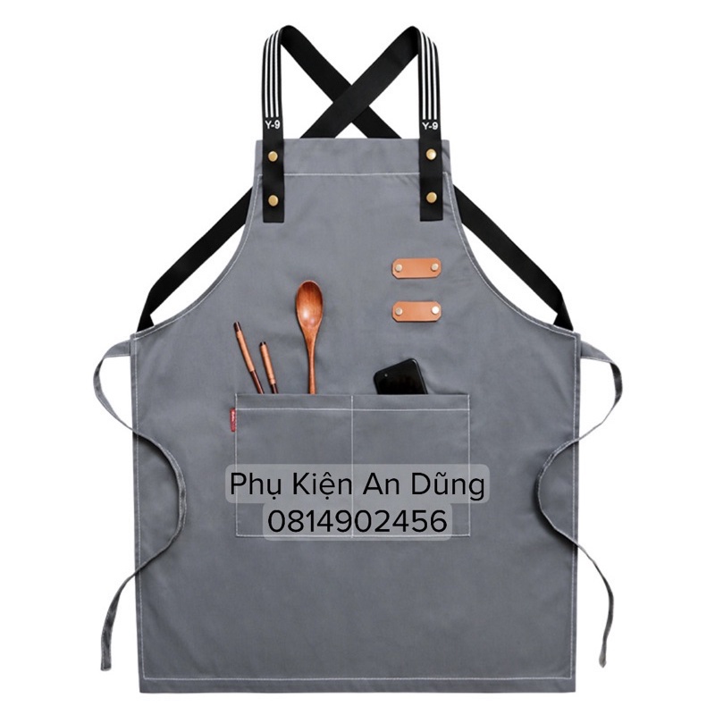 [HÀNG MỚI VỀ] Tạp Dề Cao Cấp Cho Thợ Tóc, Làm Bếp, Thợ Điện,...Đa Năng Màu Xám Ghi Phối Nâu