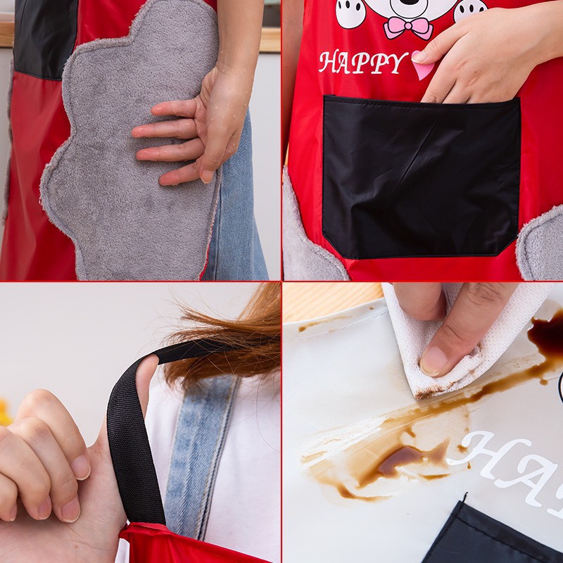 ⚡HÀNG MỚI VỀ⚡Tạp Dề Chống Thấm Nước In Hình Gấu Dễ Thương Có Thể Chùi Tay 88209