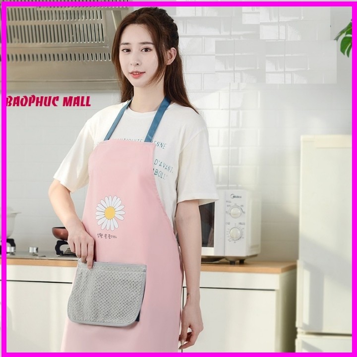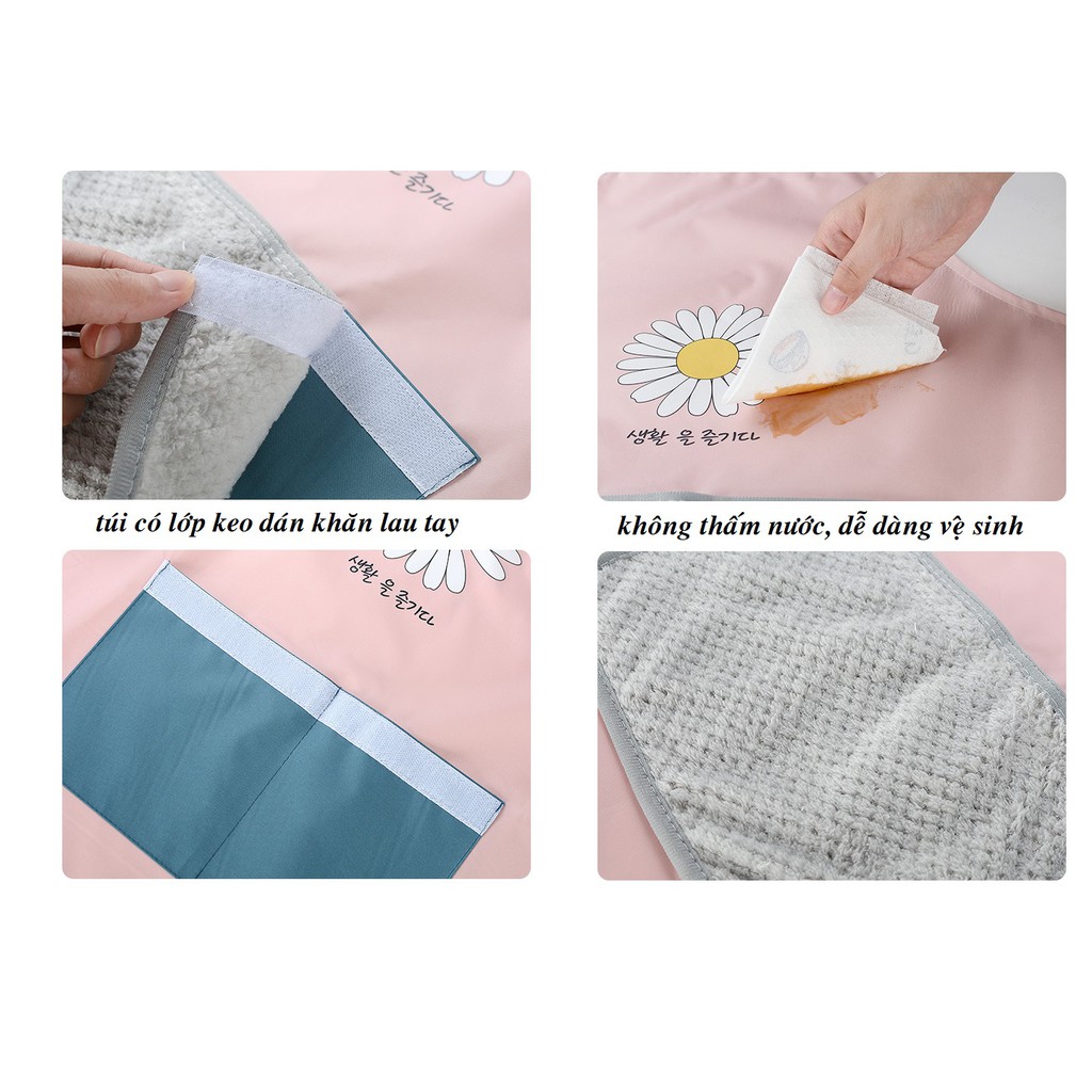 [Hàng Mới Về]Tạp dề nấu ăn chống thấm nước nhiều họa tiết có túi đựng và khăn lau tay