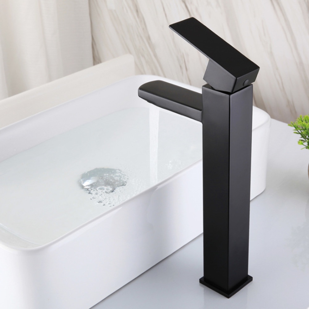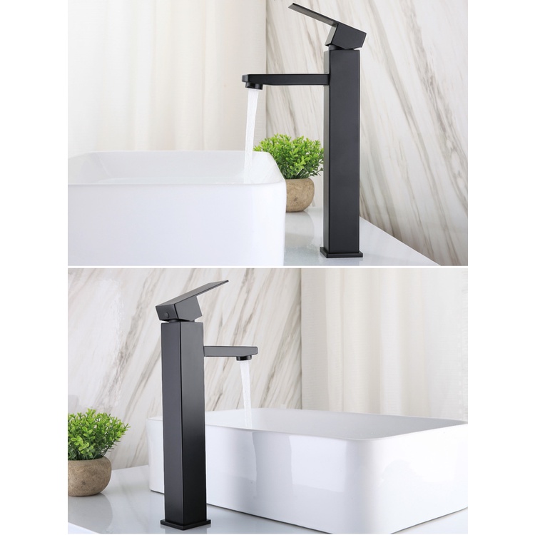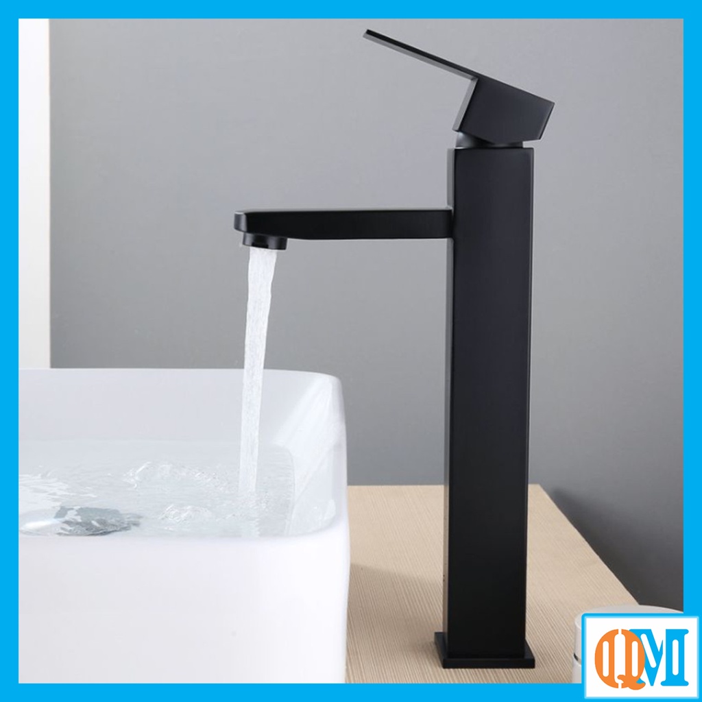 (Hàng mới về) Vòi Lavabo, vòi bồn rửa mặt nóng lạnh thân vuông inox 304 màu đen sang trọng cao 30cm - QM.VR024Mô tả sản phẩm: