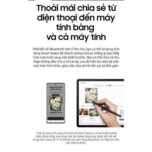 * Tương thích với điện thoại thông minh Samsung Galaxy, máy tính bảng và PC hỗ trợ S Pen. Tất cả các thiết bị phải được đăng nhập vào cùng một tài khoản Samsung.