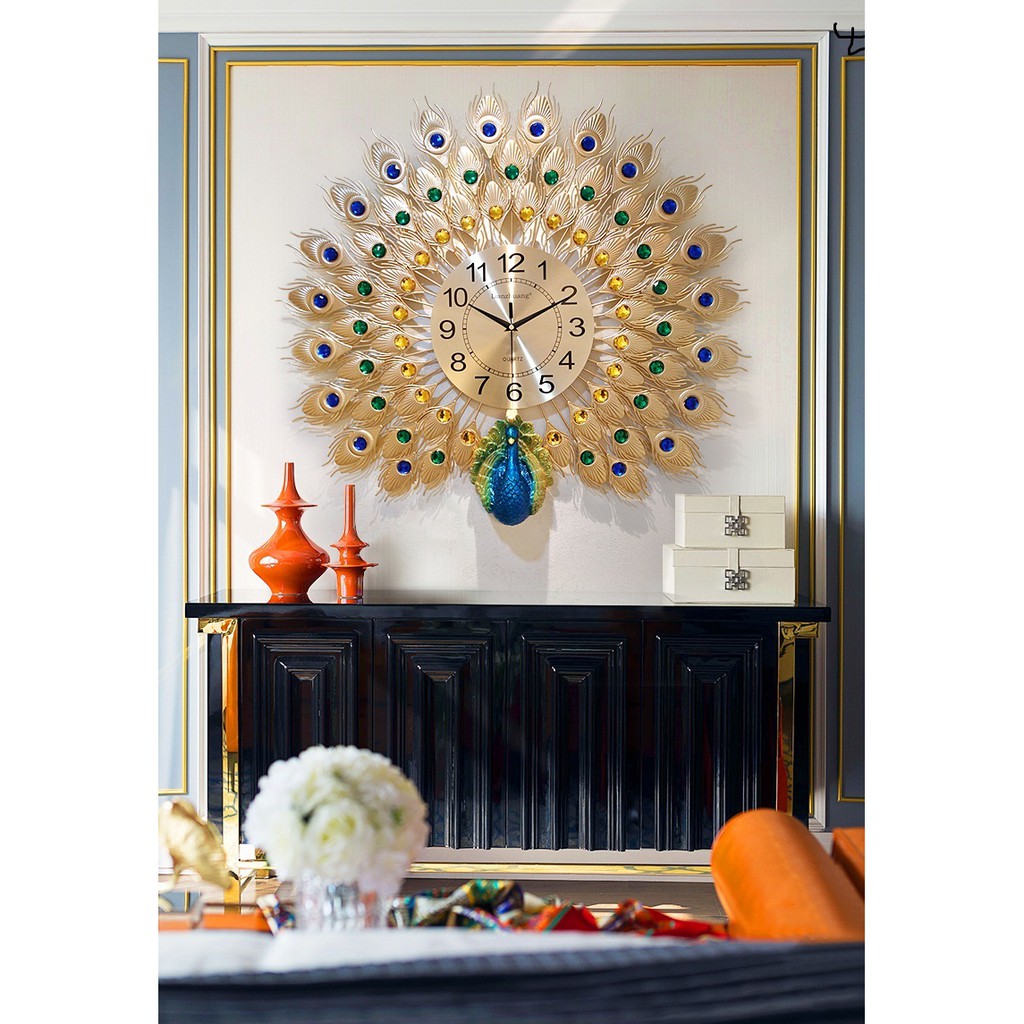 Nhà cửa & Đời sống > Trang trí nhà cửa > Đồng hồ || [ hàng nhập khẩu ] Đồng Hồ Treo Tường trang trí nghệ thuật họa tiết Chim Công Khoe Sắc kt 70cm- bảo hành 24 thángCòn hàng