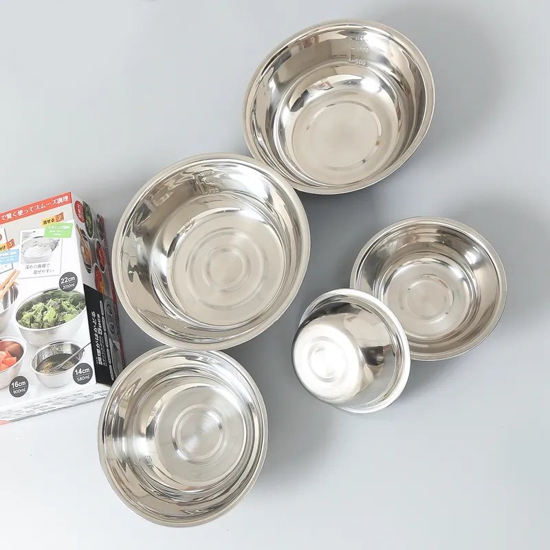 Nhà cửa & Đời sống > Dụng cụ chăm sóc nhà cửa > Chậu, xô & gáo nước || [Hàng Nhật] Bộ Thau Inox 5 Món Dùng Rửa Rau Củ Quả, Thau Trộn Salad Dày Dặn Siêu Tiện Dụng Cho Nhà Bếp Size Từ 14-24cmCòn hàng