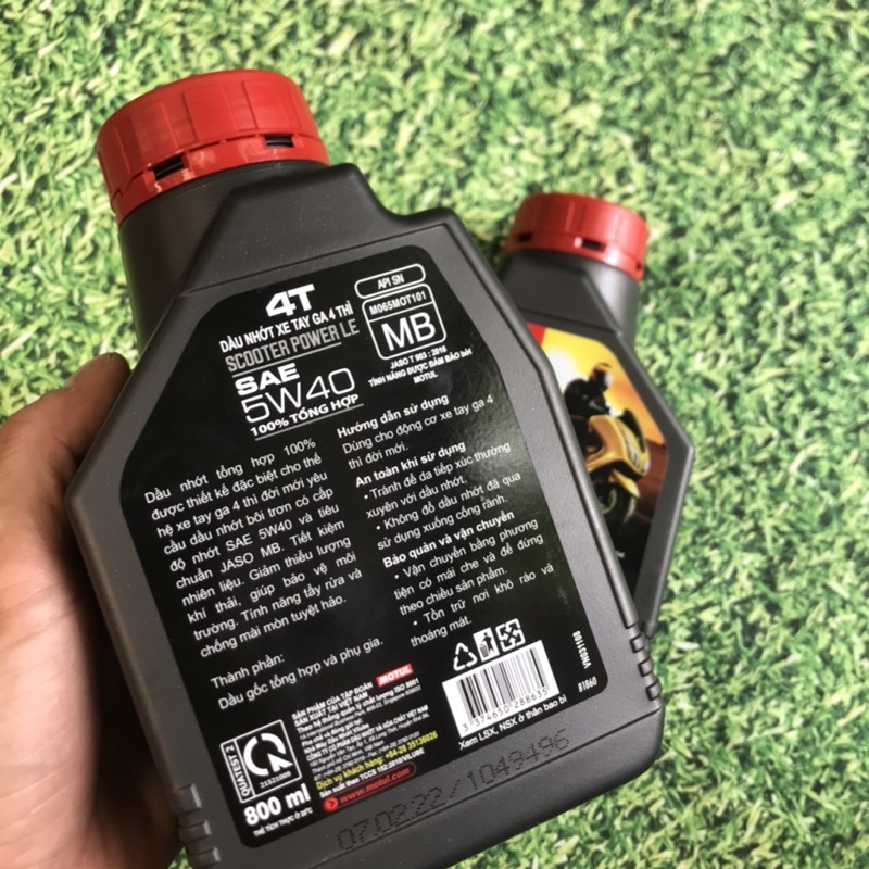 Chú ý: Motul Scooter Power LE 5W40 0.8L không thích hợp cho động cơ xe máy số 4 thì.